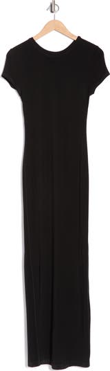 Breeze through your day in this cap-sleeve jersey maxi dress cut in a reversible body-con silhouette with a slit that may be worn in the front or back.