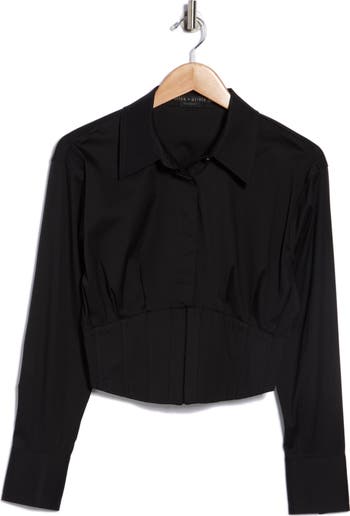 Corset-inspired details lend a sultry vibe to a buttoned shirt cut from low-stretch cotton for a crisp fit with every wear.