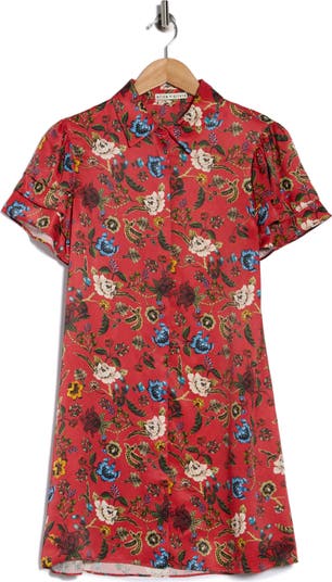 A vintage-inspired floral print and tiered flutter sleeves amplify the charm of this lightweight shirtdress cut in a subtle A-line silhouette.