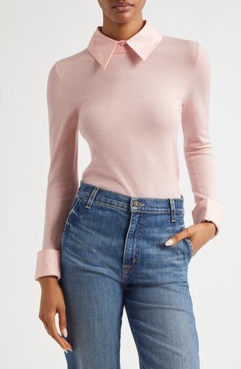 A woven collar and cuffs make a crisp counterpoint to the soft stretch-wool of this sweater with back-to-class vibes you'll love for the season.