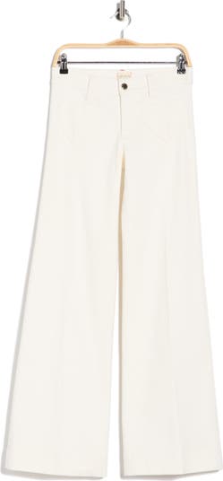 Charming heart-shaped patch pockets delight a pair of wide-leg jeans woven from stretch-enhanced cotton for a flexible fit.