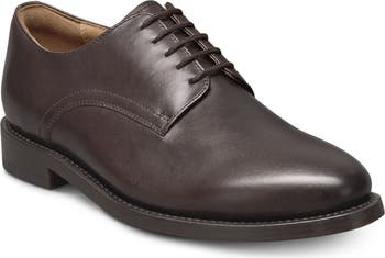 Vegetable-tanned leather and a minimalist plain-toe design highlight the impeccable craftsmanship of this hand-treated leather derby featuring Goodyear welt construction for durability and stability.