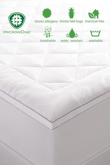 Protect your mattress with our Premium MicronOne Allergen Barrier mattress pad. This mattress pad is engineered with the innovative MicronOne fabric technology, creating a clean barrier between you and potential micro toxins that build up naturally over time. MicronOne is certified and clinically proven to block dust mites, mold spore, pollen, bed bugs, pet dander and other irritants. Features 1-inch gusset for extra support and framed diamond quilted construction for reduced shifting of fill. This mattress pad is filled with hypoallergenic memory fiber offering soft and lofty back support. Machine washable for easy care.