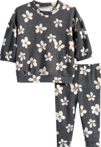 A charming print keeps baby looking chic while staying cozy in this sweatshirt and leggings set made with a brushed finish and crafted from a soft cotton blend.