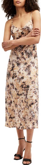 An artistic animal print makes a splash on an airy slipdress that's a contemporary style staple.
