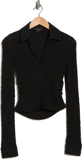 Elevate your weekend ensembles with this slim-fit shirt designed with gentle ruching at the sides and cut from textured-wavy fabric.