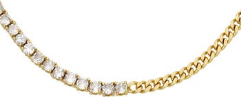 Complete your look with the modern allure of a distinctive necklace split between chain links and shimmering glass crystals.