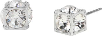 Brilliant crystals fill all sides of cube stud earrings with a bold edge to update your everyday style.