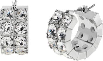Brilliant crystals fill the wide, double-row hoop of huggie earrings with a rebellious edge to update your everyday style.