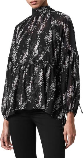With a ditsy floral print, layered cami design and mock neck, this stunning long-sleeve blouse brings the elegance.