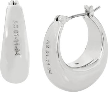 Logo engraving puts a signature stamp on lightweight tube hoop earrings fashioned in a tapered silhouette.