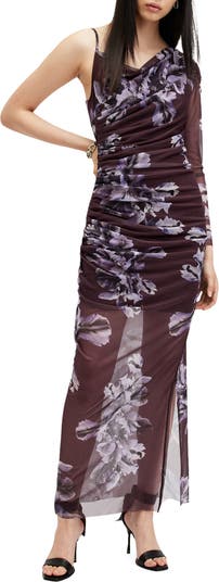 Pleated details along one side lend superior drape to this mesh maxi dress with an easy-moving side slit.