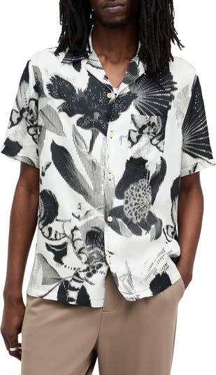 Ghostly flowers rendered in lines and shadows float like clouds on a shirt made of soft, lightweight viscose in a fit that invites cool breezes on sunny days.