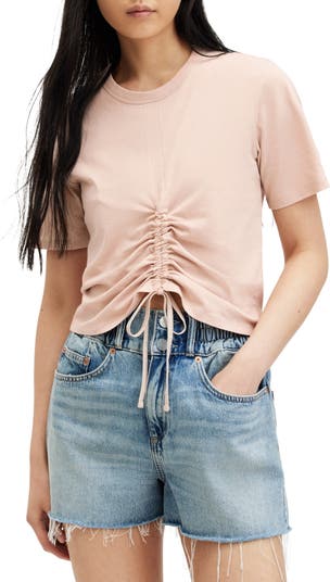 Cinch up the front of this drawstring-ruched cotton T-shirt to give your look a personalized touch.