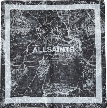A logo and map print brings artistic appeal to this elegant square scarf cut from lightweight silk for luxurious style.