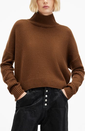 Extended ribbing at the cuffs adds to the textural allure of this boxy turtleneck sweater knit from a luxurious blend of cashmere and wool.