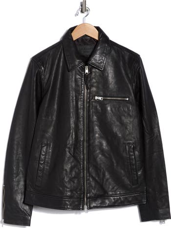 Luxe sheep leather complements the minimalist style of this clean-lined zip-front jacket that's an elevated alternative to a bomber.
