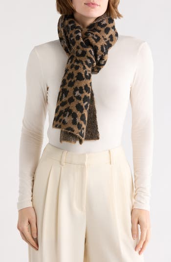 Bold leopard print enhances the classic cold-weather vibe of a cozy wool-kissed scarf that adds a perfect amount of warmth to your look.