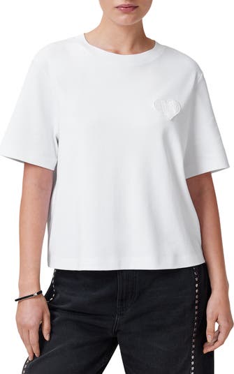 Build out your collection of weekend-ready essentials with this comfy cotton T-shirt refreshed in a boxy silhouette and detailed with a logo-stuffed heart patch.