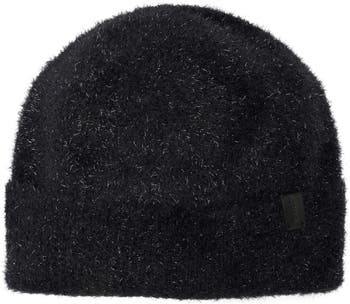 Glam up your cold-weather looks with this shimmery eyelash-knit beanie framed by a cozy upturned cuff.