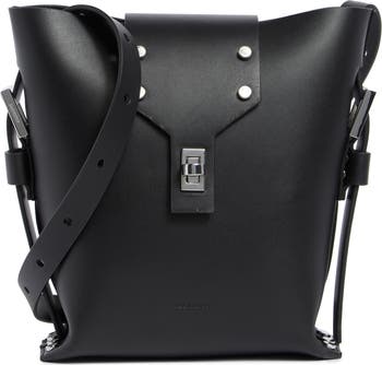 The depth and structure of a bucket bag meets the hands-free ease of a leather crossbody with this stylish staple detailed with gleaming hardware.
