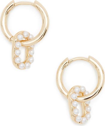 Glossy huggie hoop earrings provide endless versatility with removable oval links encrusted with lustrous imitation pearls.