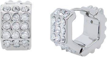 Pavé crystals add captivating sparkle to these chunky geometric link hoop earrings dipped in a high-shine finish.