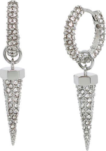 Pavé crystals add captivating sparkle to these edgy hoop earrings anchored with a striking spike.
