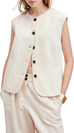 Subtle pinstripes bring a polished, professional look to this classic vest with a button-front closure.