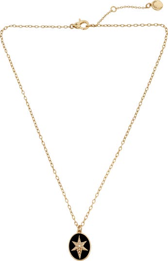 Resin faux pearls add glossy sparkle to a star medallion pendant suspended from a delicate chain necklace.