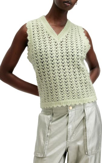 Fine yarns with wool and mohair keep the feel of this openwork sweater-vest light and airy for a just-right layer that's rich with texture.