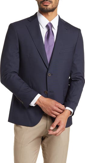 A notch lapel, double button closure and flap pockets accentuate the classic styling on this tailored blazer.