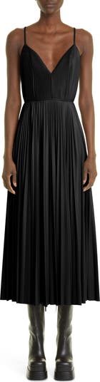 Knife-sharp pleating brings texture and movement to this Italian-made faux-leather dress with a strappy fitted bodice and relaxed skirt.