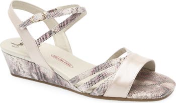 Memory-foam cushioning keeps you light on your feet in sensible, low-wedge sandals ready for exploring. Svelte straps crisscross at the ankle and toe for added stability and to shape a chic silhouette across this Italian-made sandal.