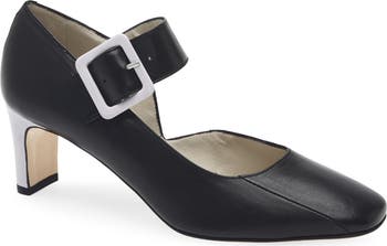A chunky buckle secures your foot in this square-toe pump outfitted with an arch-supportive footbed and crafted in Italy from supple leather.