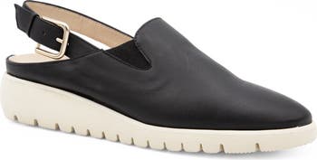 Gleaming hardware and rich leather distinguish a sporty slingback grounded by a cushioned footbed and durable wedge heel for lasting wear.