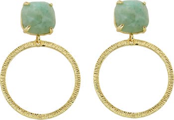 Cushion-shaped Amazonite stones bring an earthy element to textured open-circle drop earrings plated in warm 14-karat gold.