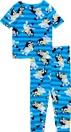 Getting ready for bed becomes even more exciting with this short-sleeve, two-piece jersey pajama set featuring their favorite cartoon dog, Bluey.