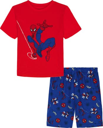 Bedtime gets a heroic upgrade with these two-piece short pajamas made from a supersoft jersey covered in a kid-approved Spider-Man print.
