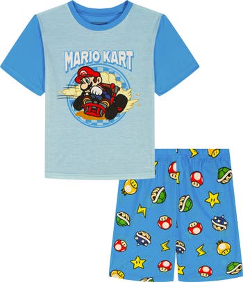 Level up their bedtime style with this fun two-piece short pajama set featuring their favorite Super Mario characters.