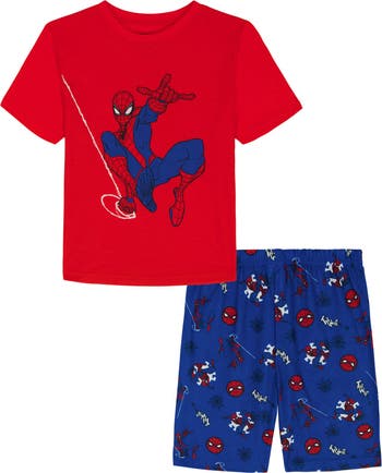 Bedtime gets a heroic upgrade with these two-piece short pajamas made from a supersoft jersey covered in a tot-approved Spider-Man print.