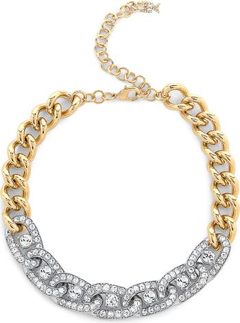 Elevate any look with this stunning choker necklace composed of a mix of goldtone curb links and oval links set with crystal pavé.