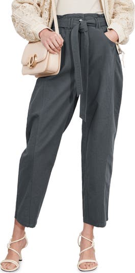 Tapered legs enhance the everyday sophistication of lightweight cotton pants complete with a matching tie belt.