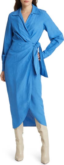 This midi-length wrap dress with a tulip skirt and collared neckline takes you seamlessly from work to weekend.