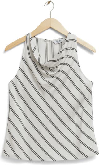 Diagonal stripes run down this relaxed-fitted top fashioned with a cowl neckline and cutaway shoulders.