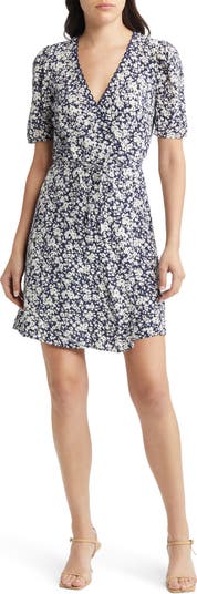 This lightweight linen mini is designed in a wrapped silhouette with delightful allover blooms.
