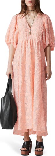 • WAYF Leonie Leopard Print Puff Sleeve Midi Dress