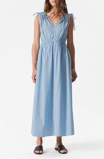 Keep your weekend style on point with this light and airy sleeveless dress patterned with tonal stripes.