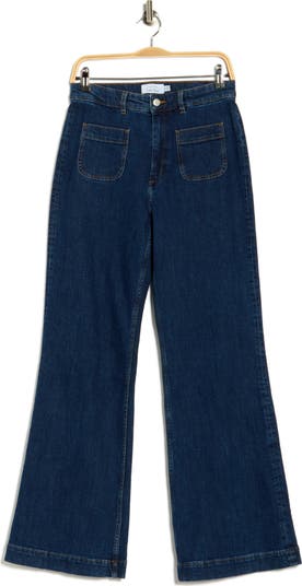 Cute patch pockets in front refresh the classic style of these wide-leg jeans made from low-stretch denim.