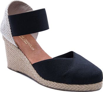 A checkerboard-weave heel cup and jute-wrapped wedge bring boho-chic charm to a breezy sandal refined by a playful mix of textures.